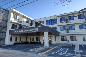 2019年に新棟をオープンした、こがケアアベニュー宮ノ陣は、172室の居室、新しい大浴場、交流スペース、広い庭園を備えています。